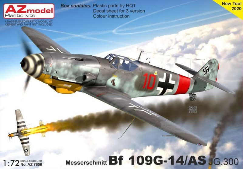 Maqueta a escala 1/72 del BF 109 G-14/ AS de AZ Model. Nuevo molde. Contiene calcas para 3 aparatos.