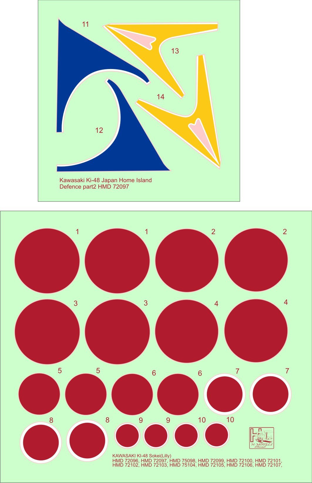 Calcas a escala 1/72 para el ki-48 Lily de H Model decals.
