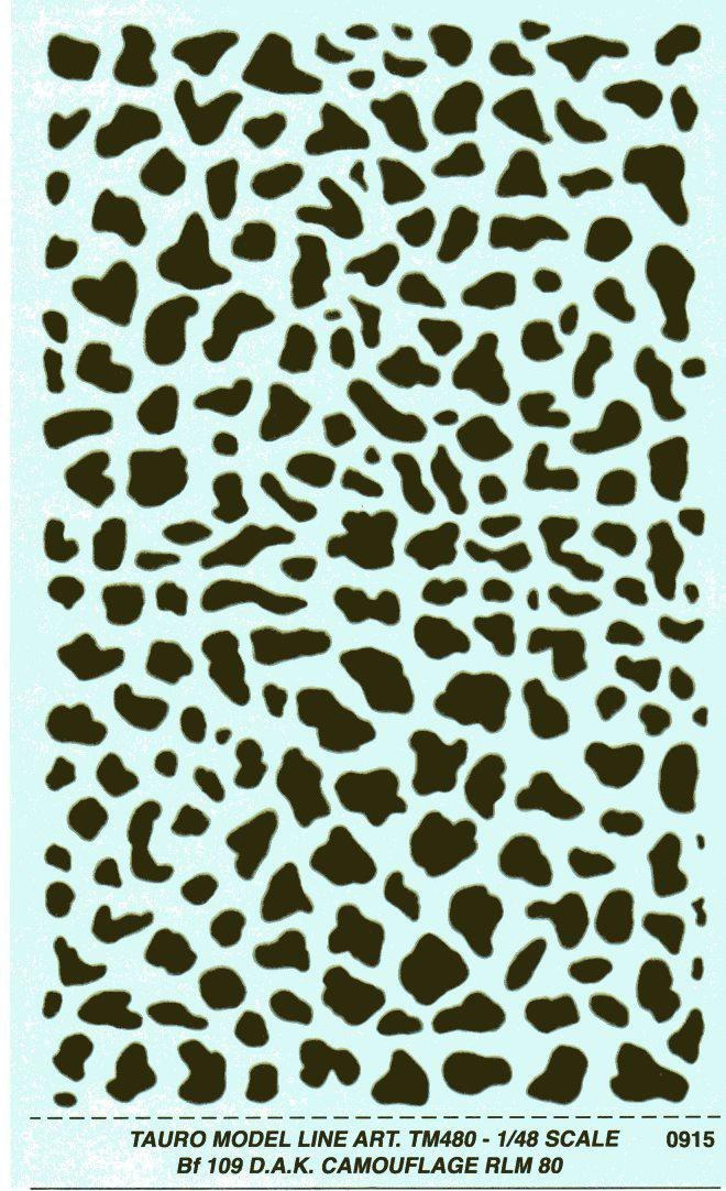 Calcas a escala 1/48 de Tauro Decals para el camu en RLM80 del BF 109 en el Norte de África.