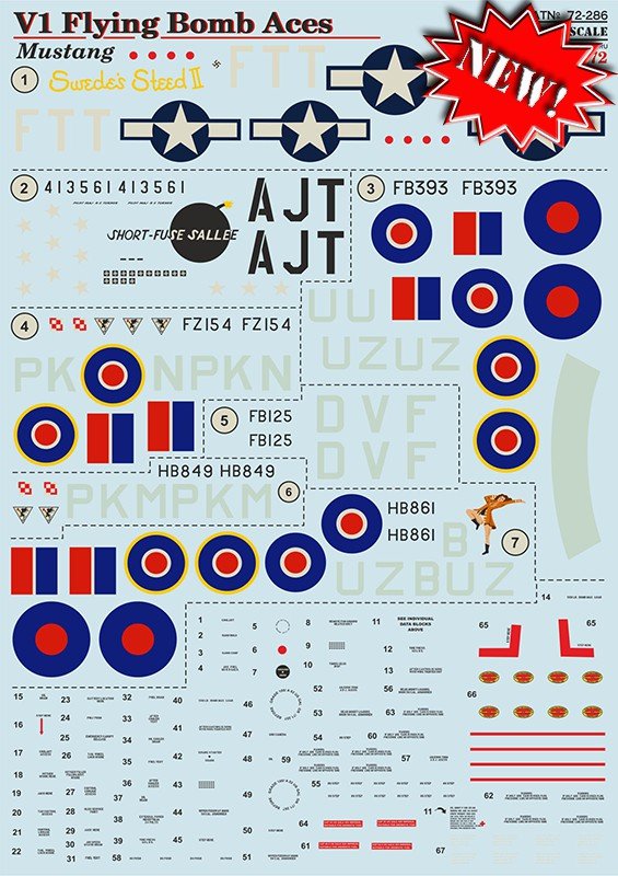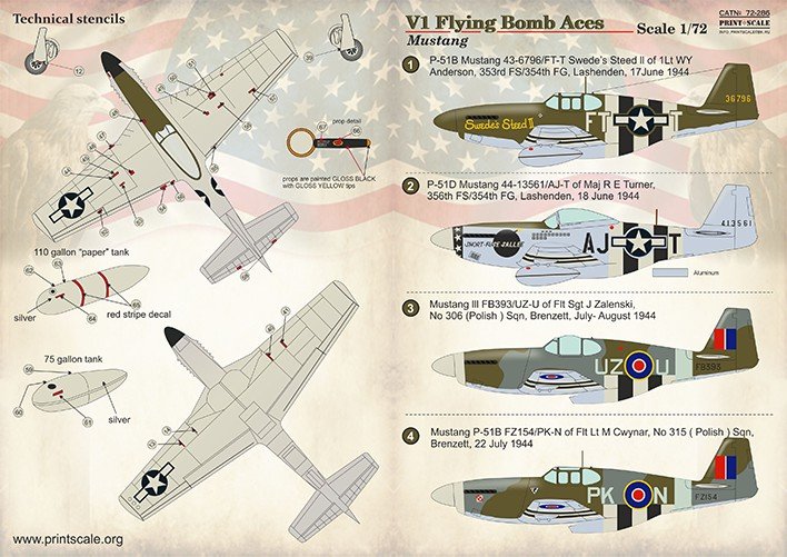 Calcas a escala 1/72 de Print Scale sobre ases relacionados con las V1 alemanas.