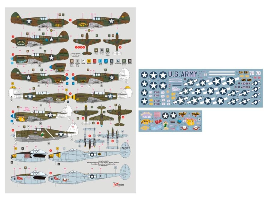 Set de calcas a escala 1/72 de DK Decals para aparatos del 49 Grupo de Caza. Contiene calcas para nueve aparatos.