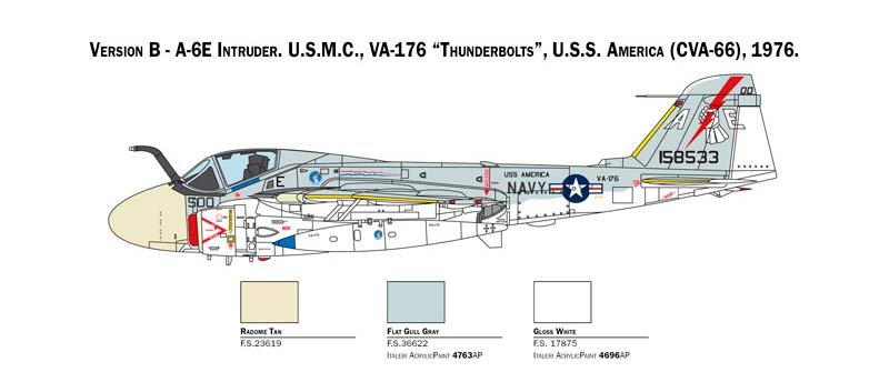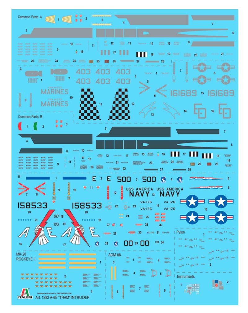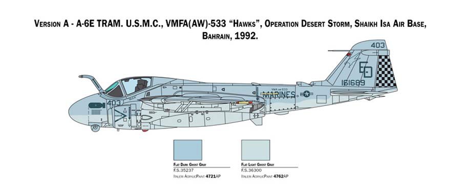 Maqueta a escala 1/72 de Italeri del Grumman A-6E Tram Intruder. Contiene calcas para 2 aparatos.