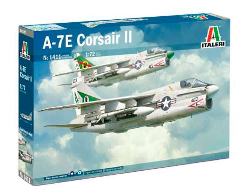 Maqueta a escala 1/72 del Corsair II de Italeri. Contiene calcas para 4 aparatos.