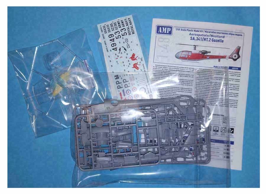 Maqueta a escala 1/48 del Aérospatiale Gazelle de AMP: Nuevo molde. Contiene fotograbados, mascarillas y calcas para 5 aparatos.