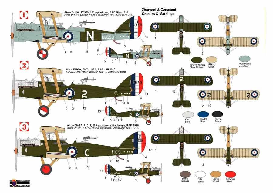Maqueta a escala 1/72 de KP del Airco DH-9a. Nuevo molde. Contiene calcas para 3 aparatos.