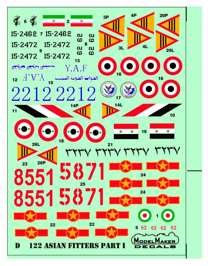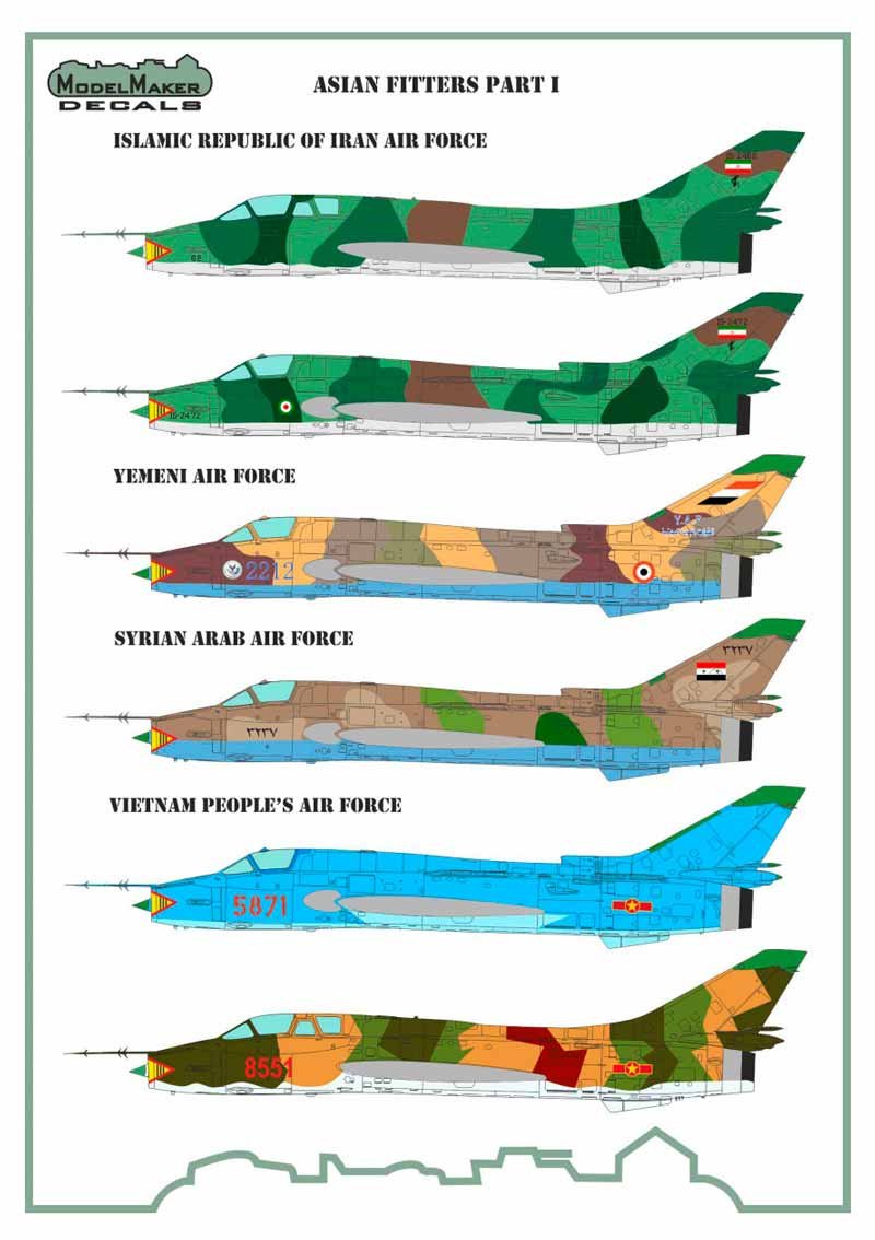 Calcas de Model Maker a escala 1/72 para el Sukhoi Su-22. Contiene calcas para 6 aparatos.