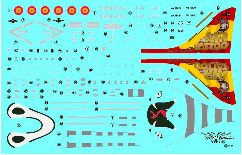 Calcas a escala 1/72 de Series Españolas para los Harrier del Air Tatoo 2019