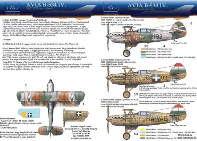 calcas a escala 1/48 para el Avia B-534 de la marca Hung Aero Decals. Incluye calcas para tres aparatos.