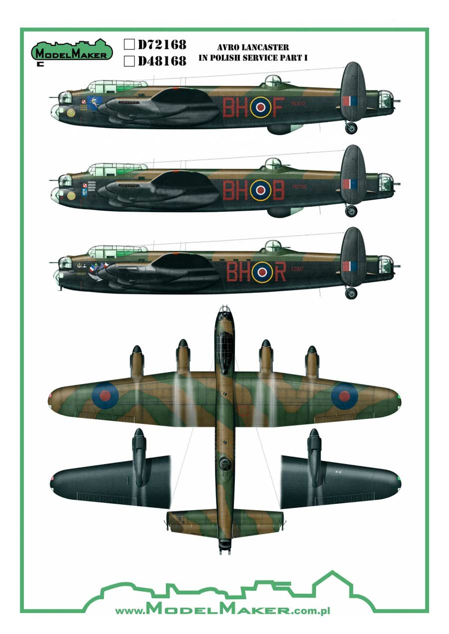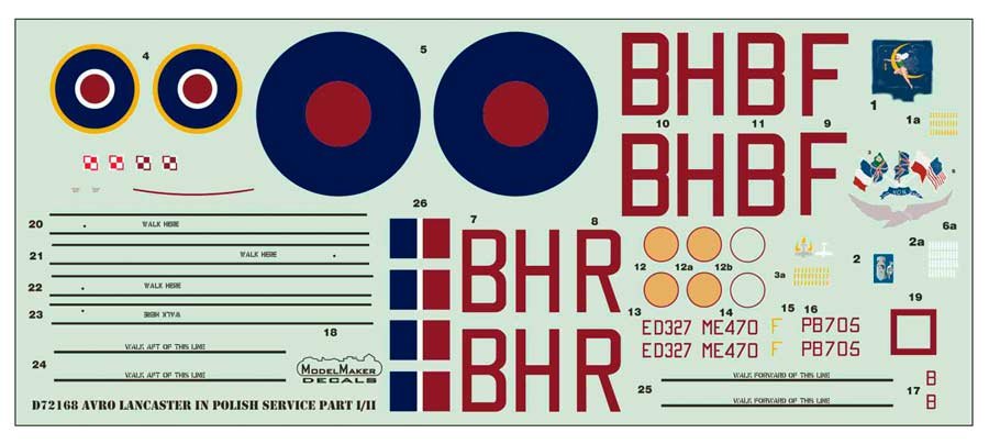 Set de calcas a escala 1/72 de Model Maker Decals para los LAncaster en los escuadrones polacos de la RAF. Contiene calcas para 3 aparatos.