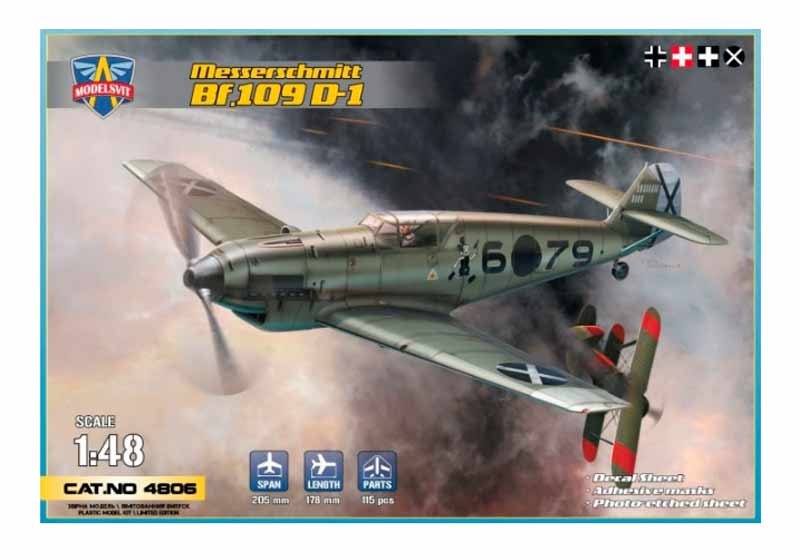 Maqueta de Modelsvit a escala 1/48 del Bf 109 D-1. Contiene fotograbados, mascarillas y calcas para 6 aparatos, uno de ellos de la Legión Cóndor.