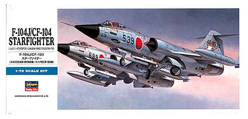 Maqueta a escala 1/72 de Hasegawa del F-104J/ CF-104 Starfighter. Contiene calcas para 5 aparatos.