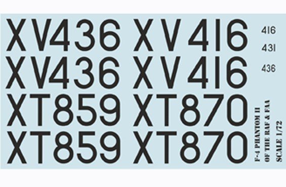 Hoja de calcas a escala 1/72 para los Phantom de la RAF y FAA de la firma Print Scale.