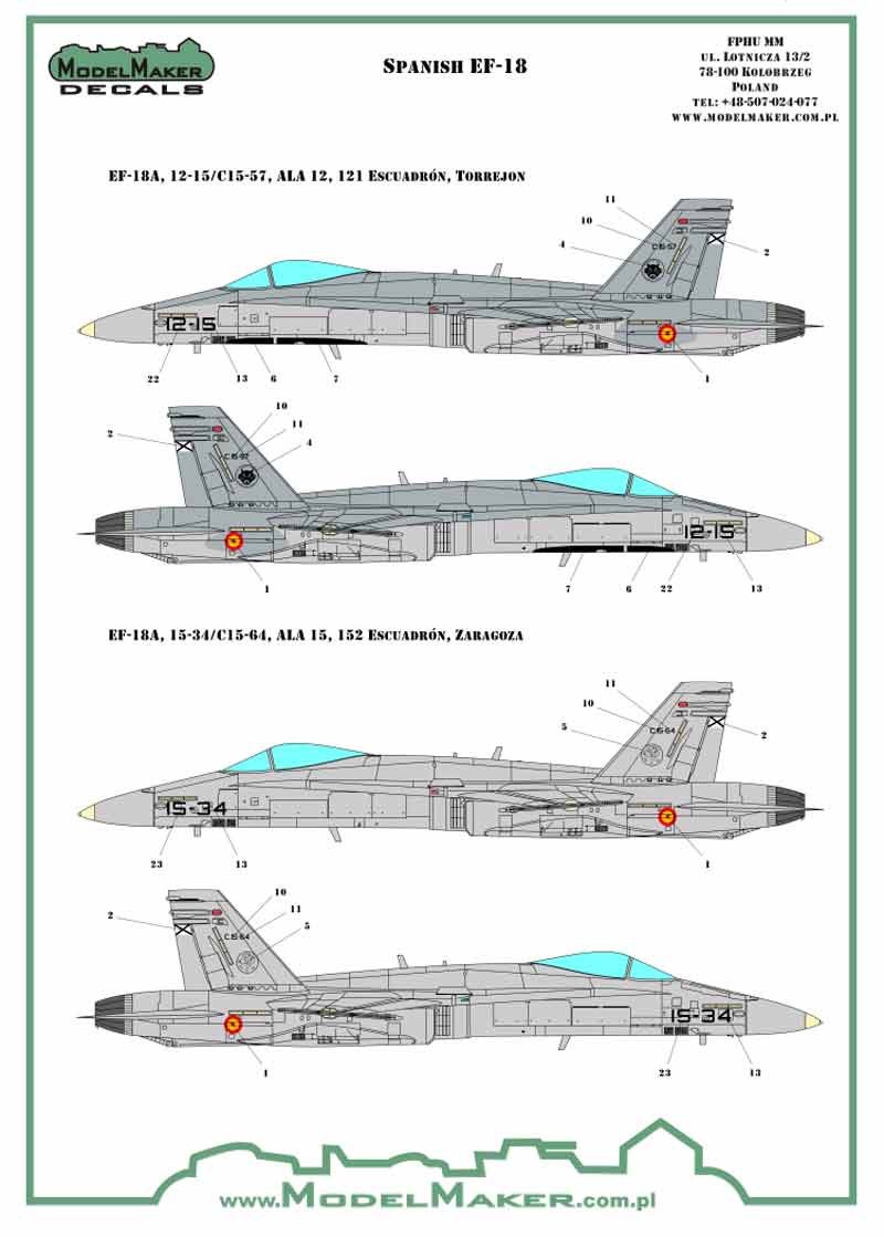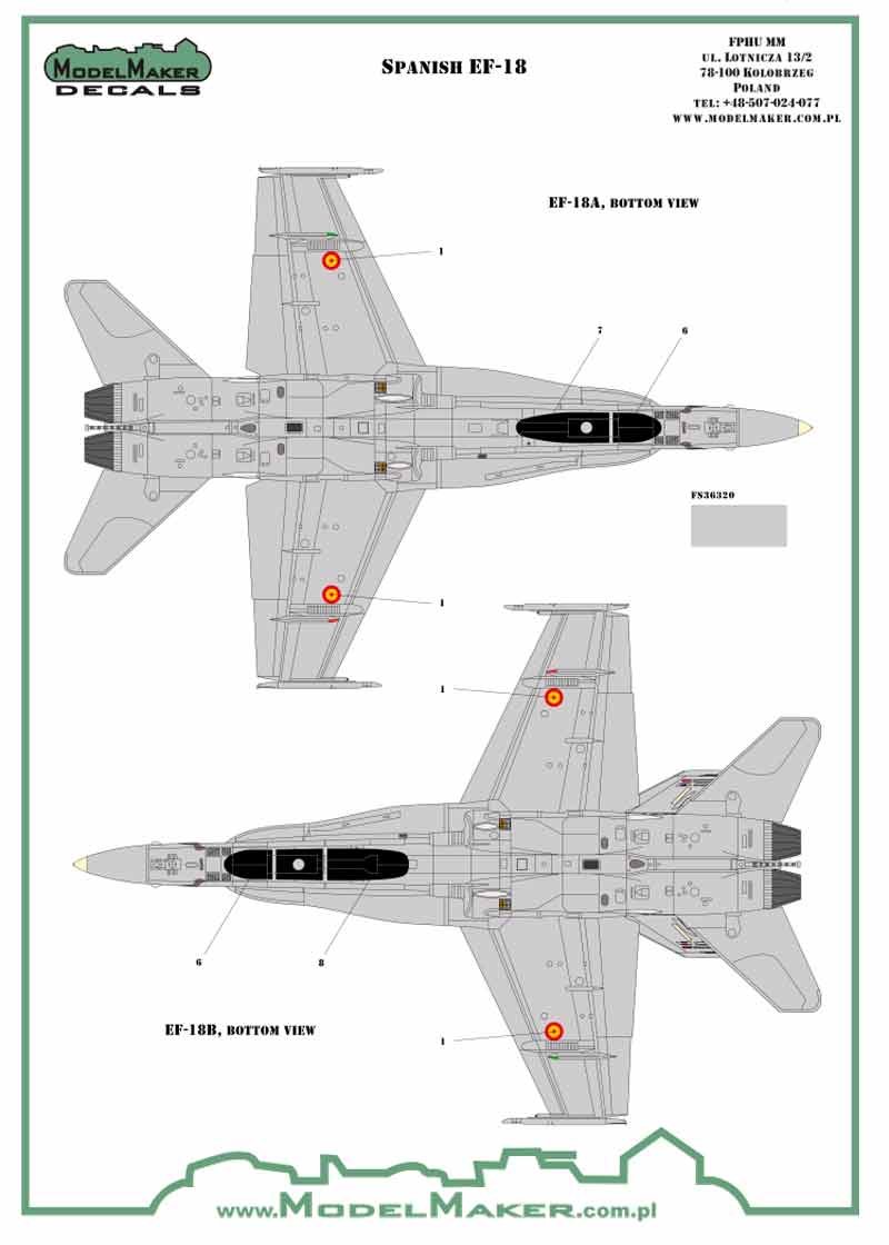 Calcas a escala 1/48 de Model Maker de insignias y stencils para los F/A-18 del Eda.