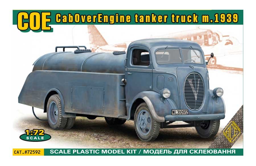 Maqueta a escala 1/72 de ACE del camión cisterna Ford COE de 1939. Contiene calcas para un vehículo de la Luftwaffe.