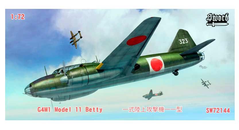 Maqueta a escala 1/72 de Sword del mitsubishi G4M1 Betty. Nuevo molde. Contiene calcas para 2 aparatos, mascarillas y motores de resina.