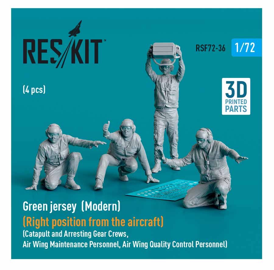 Cuatro figuras en resina 3D de Reskit a escala 1/72 para dotación de cubierta de portaaviones de la US Navy. Las figuras contienen calcas.