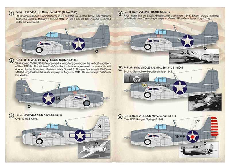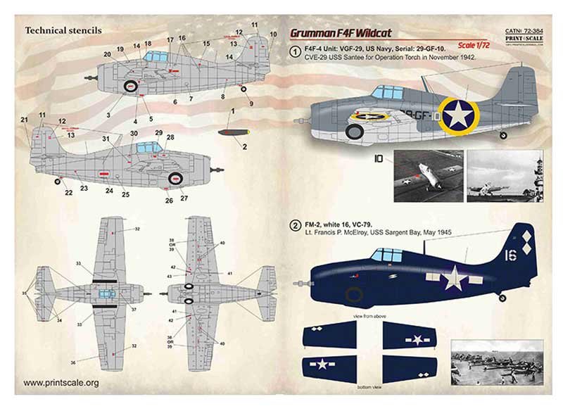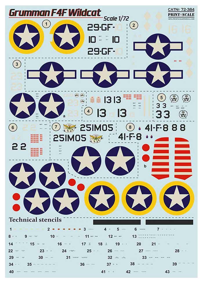 Calcas a escala 1/72 de Print Scale para el Wildcat. Contiene calcas para 8 aparatos.