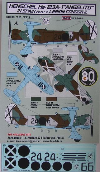 Calcas a escala 1/72 para el Hs-123 de la Legión Cóndor de Kora Decals.