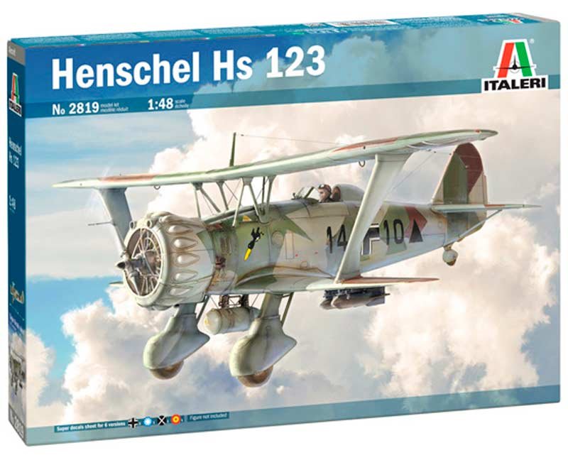 Maqueta a escala 1/48 de Italeri del Henschel Hs-123 “Angelito”. Molde original de Esci. Calcas para 6 aparatos, entre ellos uno de la Legión Cóndor y otrod el Eda.