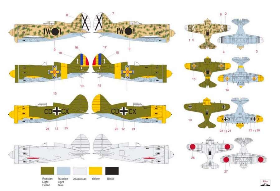 Set de calcasa escala 1/72 de ROP OS para el polikarpov I-16. Contiene calcas para 4 aparatos. Uno de ellos del bando nacional.