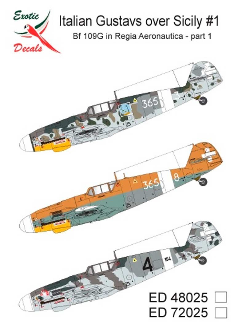 Calcas a escala 1/48 de Exotic Decals para Bf 109 G en servicio con la Regia Aeronautica sobre Sicilia.