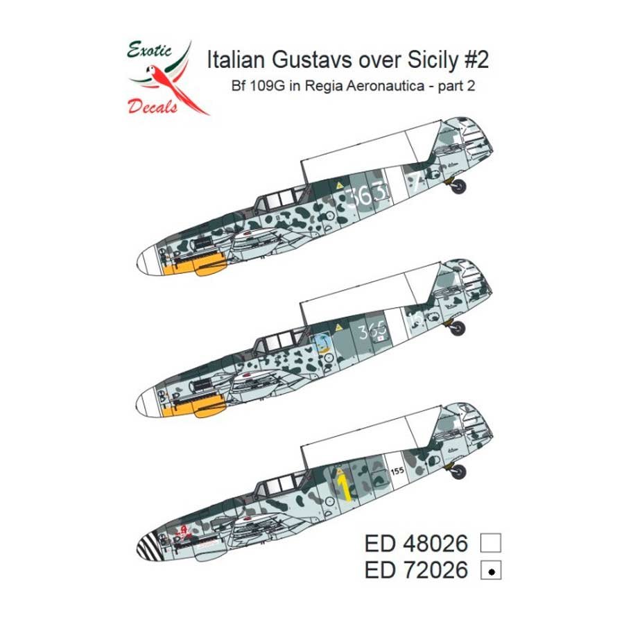 Calcas a escala 1/72 de Exotic Decals para Bf 109 G en servicio con la Regia Aeronautica sobre Sicilia.