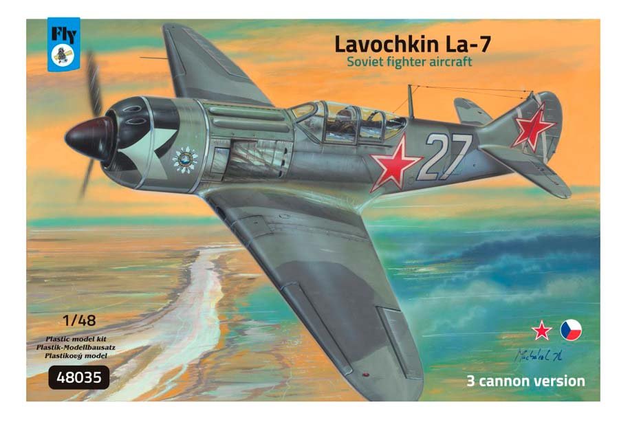 Maqueta escala 1/48 de Fly del La-7 en su versión de 3 cañones. Contiene calcas para 3 aparatos y mascarillas para la cabina.
