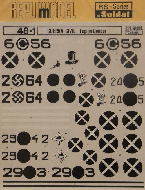 Diferentes códigos, numerales e insignias para aviones de la Legión Cóndor.