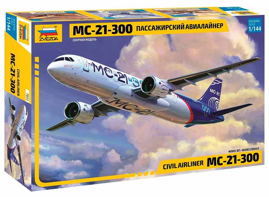 Maqueta a escala 1/144 de Zvezda del irkut MC-21-300. Contiene calcas para un aparato.