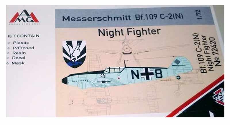Maqueta a escala 1/72 del Bf 109 C2 (N) de AMG. Contiene fotograbados, mascarillas y calcas para 3 aparatos.