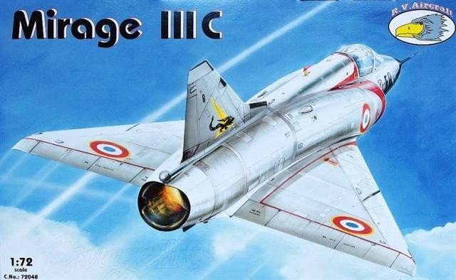 Maqueta a escala 1/72 del Mirage IIIC de RV Aircraft. Nuevo molde. Contiene calcas para 6 aparatos: 3 franceses, 2 sudafricanos y 1 suizo. Contiene eyectable de resina y tobera de resina.
