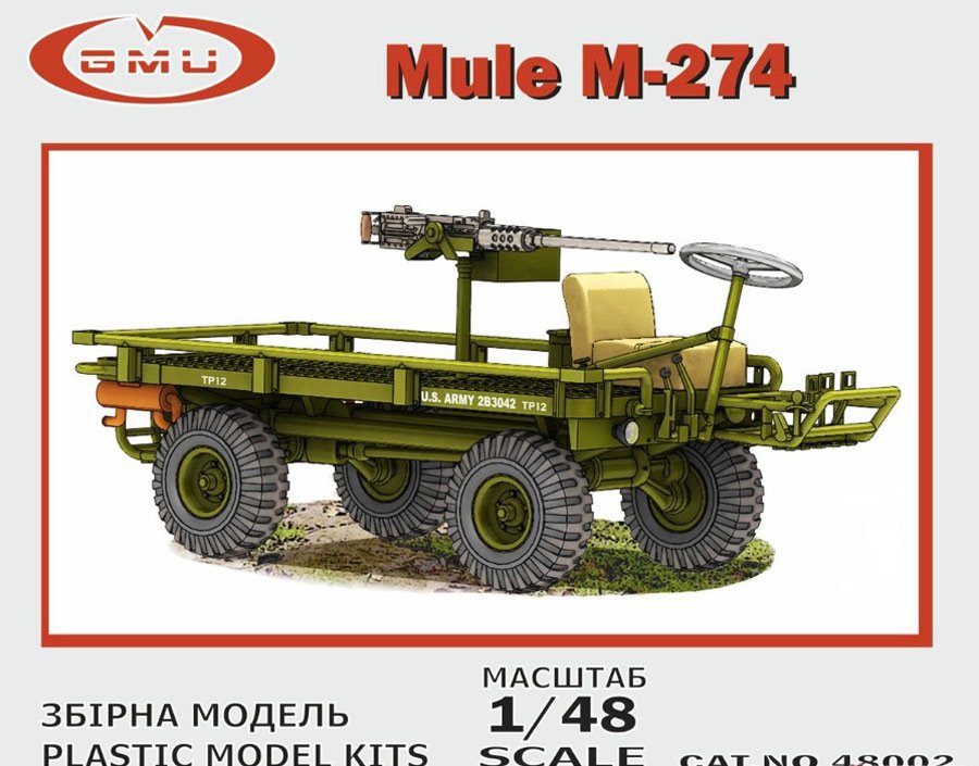 Maqueta a escala 1/48 de GMU de una Mula M-274. Contiene calcas para 2 vehículos y un fotograbado. El vehículo estuvo en servicio en España.