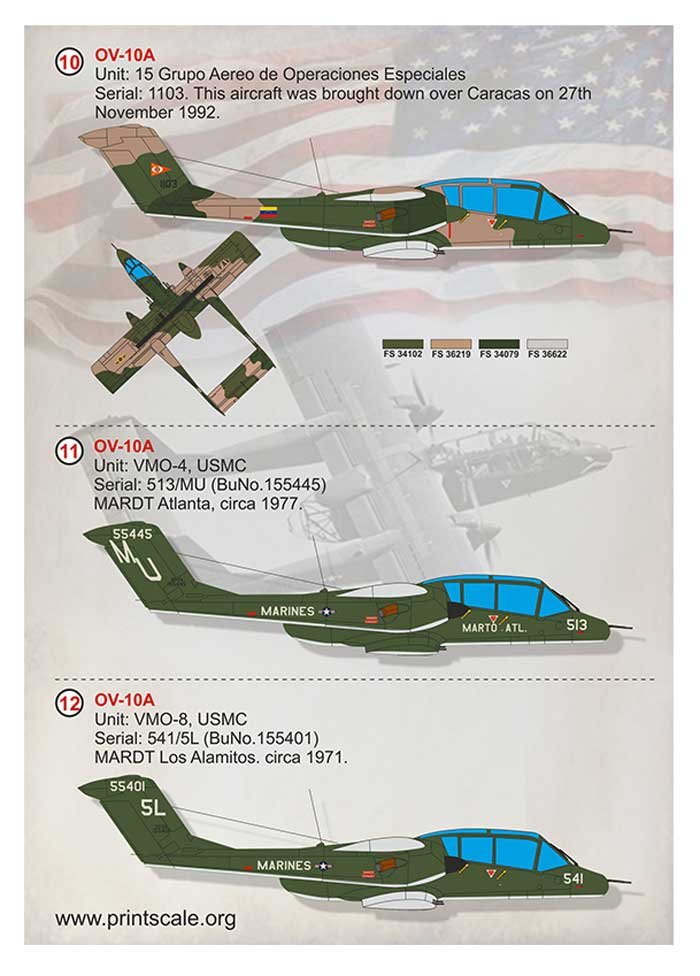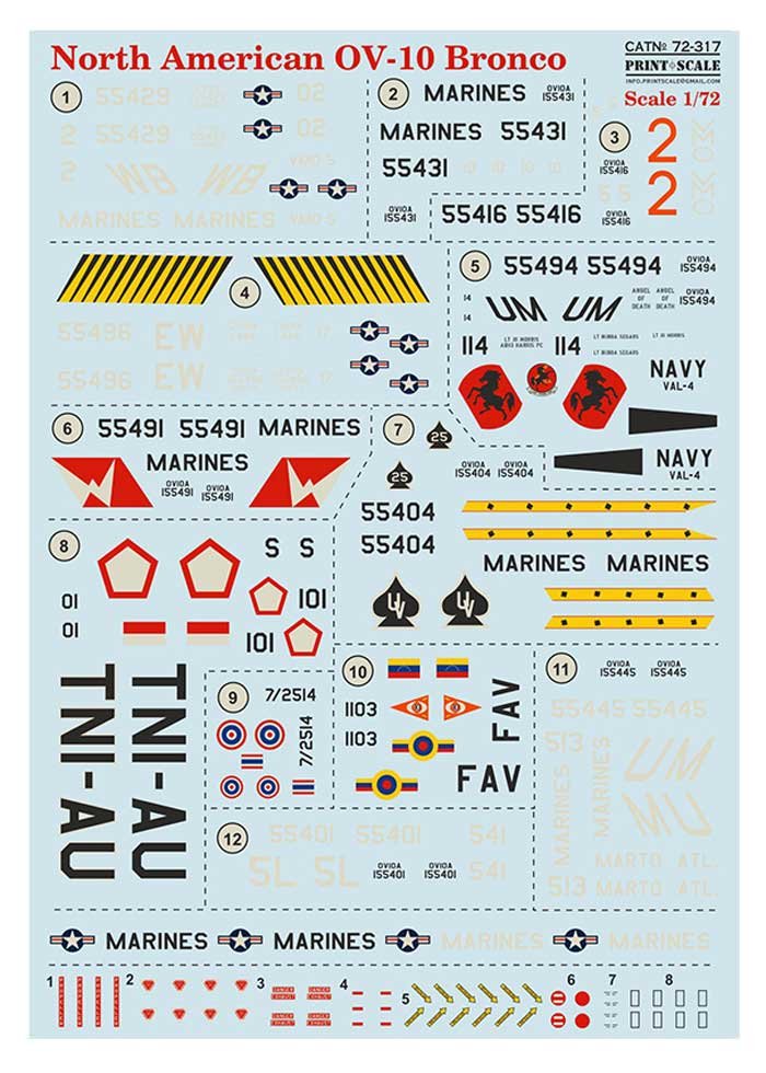 Calcas a escala 1/72 de Print Scale para el OV-10 Bronco. Contiene calcas para 12 aparatos.