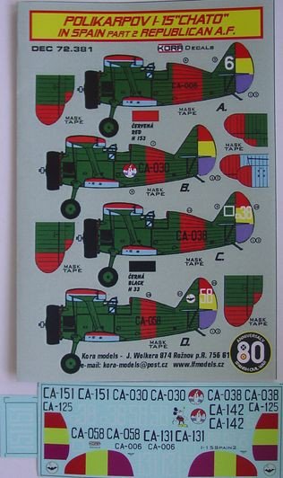 Calcas a escala 1/72 para el Polikarpov I-15 Chato de la República de la firma Kora Decals.