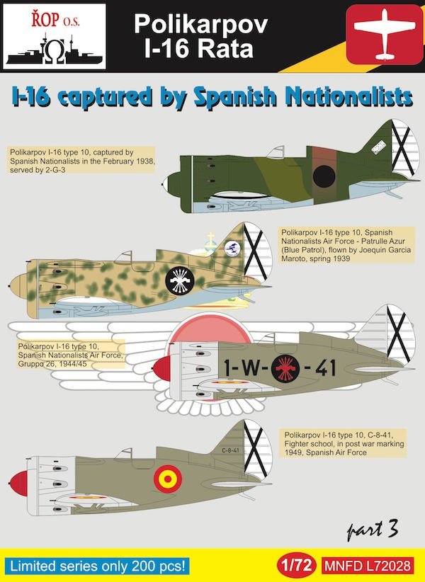Calcas a escala 1/72 para el I-16 de la firma ROP o.s.