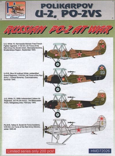 Calcas a escala 1/72 del Po-2 de la firma H-Models Decals.