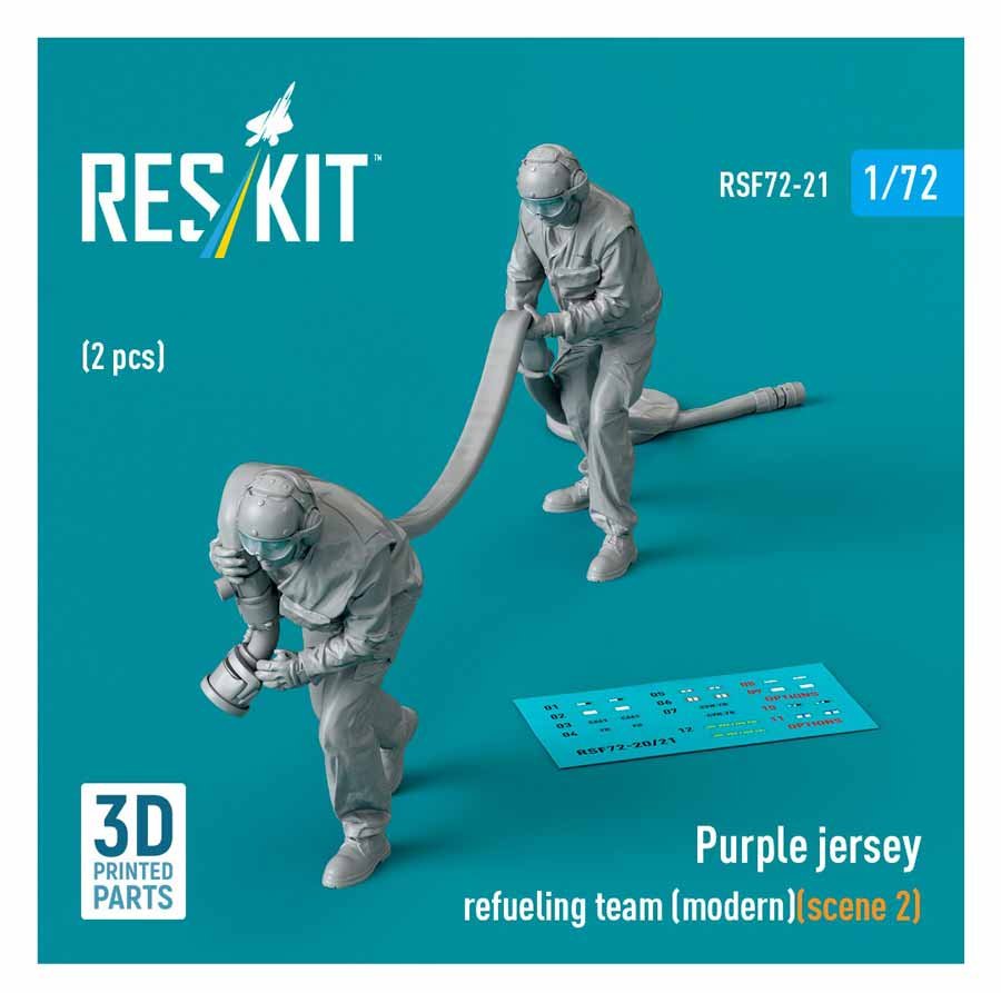 Dos figuras en resina 3D de Reskit a escala 1/72 para dotación de cubierta de portaaviones de la US Navy. Las figuras contienen calcas.