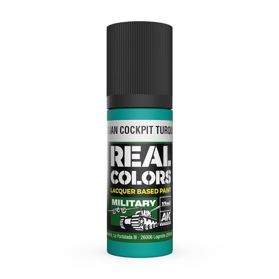 Pintura verde turquesa de la serie Real Colors de AK Interactive. BAse laca. Pintura para el interior de aviones soviéticos y rusos.