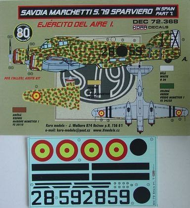 Calcas a escala 1/72 para el Sparviero en servicio en el Ejército del Aire de la firma Kora Decals.