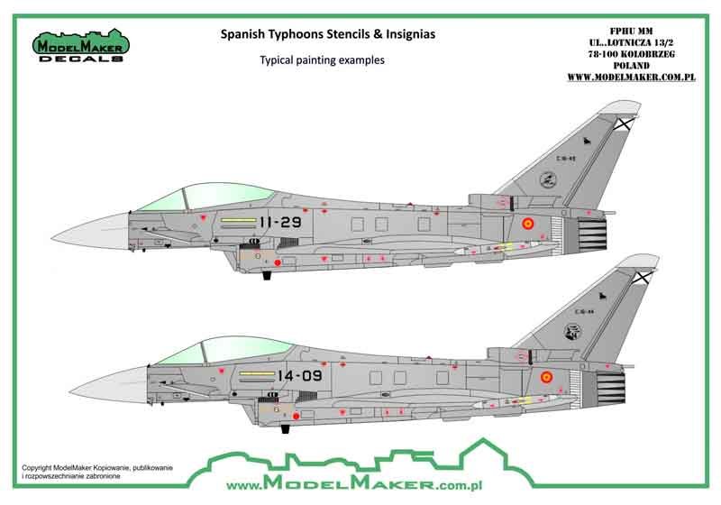 Calcas a escala 1/48 de Model maker de insignias y stencils para los Typhoon del EdA.