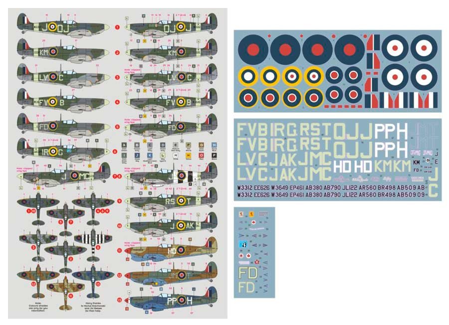 Calcas a escala 1/48 de DK Decals para 13 Spitfires de Wing Commanders.