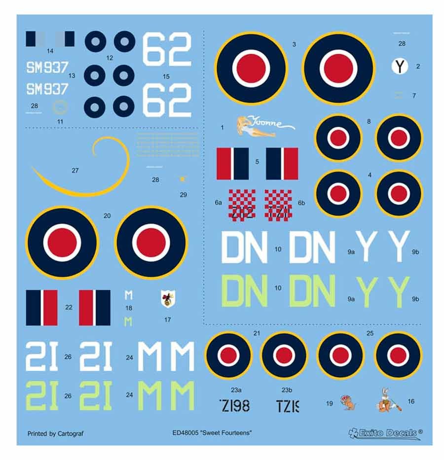 Calcas a escala 1/48 de Exito Decals para los Spitfire LF MkVb, VIII y IXe. Calcas para 3 aparatos.