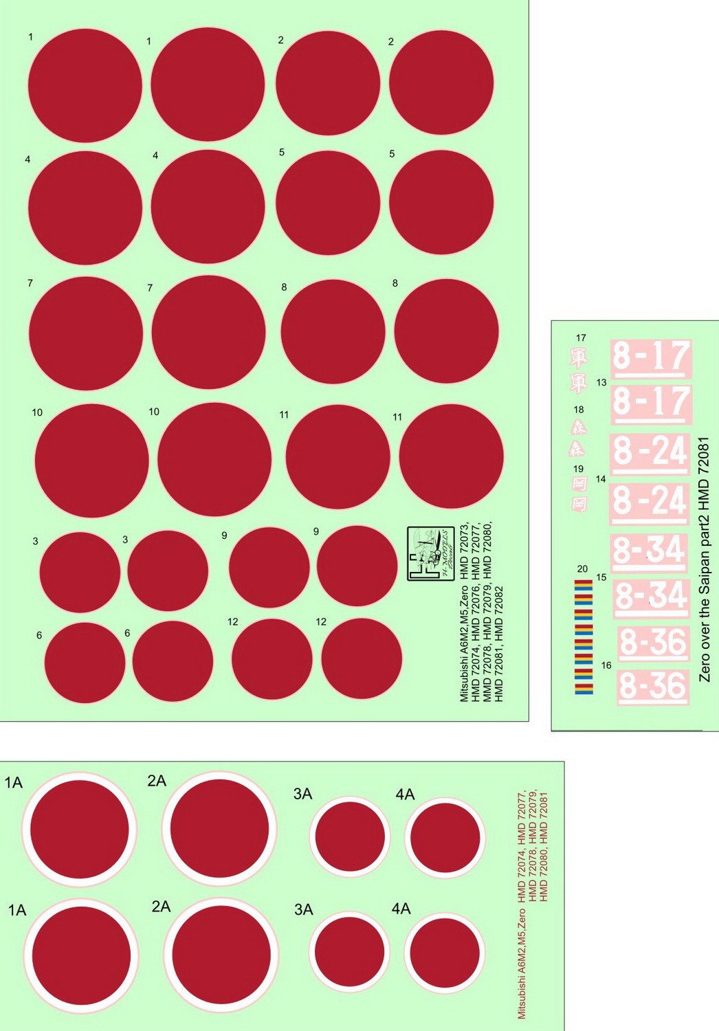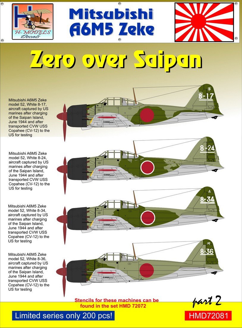 Calcas a escala 1/72 para el Zero Tipo 52 de H-M Decals.